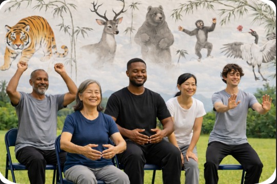 Le Wu Qin Xi, ou jeu des cinq animaux, est une méthode traditionnelle inspirée du tigre, du cerf, de l’ours, du singe et de l’oiseau. Chaque exercice ouvre une qualité de mouvement, de souffle et de présence spécifique. Cette pratique vivante permet d’enrichir la mobilité, la coordination, l’expressivité corporelle et l’engagement dans le geste.